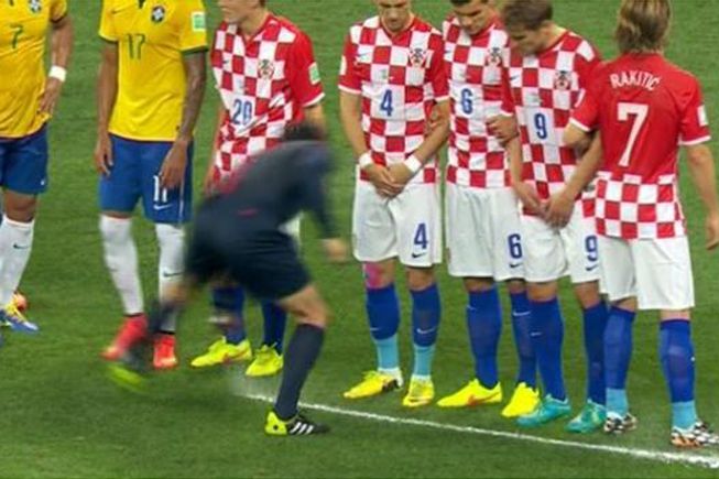 El árbitro Yuichi Nishimura protagonizó uno de los arbitrajes más polémicos en la historia de los Mundiales al cobrar una falta inexistente dentro del área croata. El hecho sucedió en una jugada en la que el delantero Fred se lanzó al suelo por sentir un roce de la marca del defensa Dejan Lovren justo cuando el marcador iba empatado 1-1.